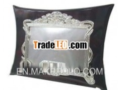 silver plated rectangular frame wooden base