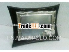 silver plated rectangular frame on wooden stand